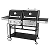 Features Locking Lid, 2 folding black metal shelves, Easy dump ash pan, Double wall insulation, Heat gauge